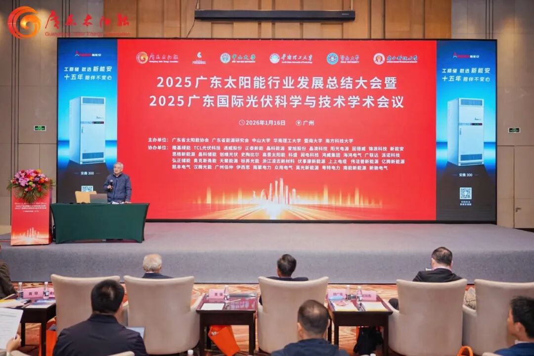 2026 年 1 月 16 日,“2025 廣東太陽能行業發展總結大會暨 2025 廣東國際光伏科學與技術學術會議” 在廣州舉辦。本次會議由廣東省太陽能協會聯合廣東省能源研究會、中山大學、華南理工大學等專業機構主辦,匯聚行業專家、高校學者與企業代表,圍繞 “雙碳” 目標下光伏產業轉型、技術創新方向開展深度交流,是廣東太陽能領域年度重要的行業交流平臺。